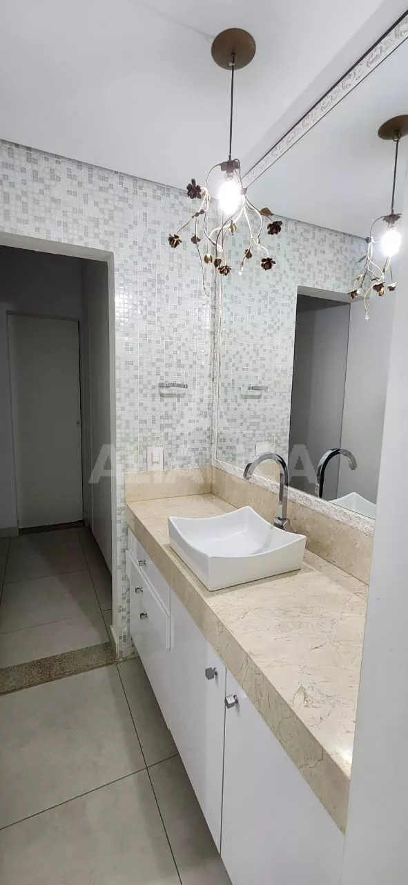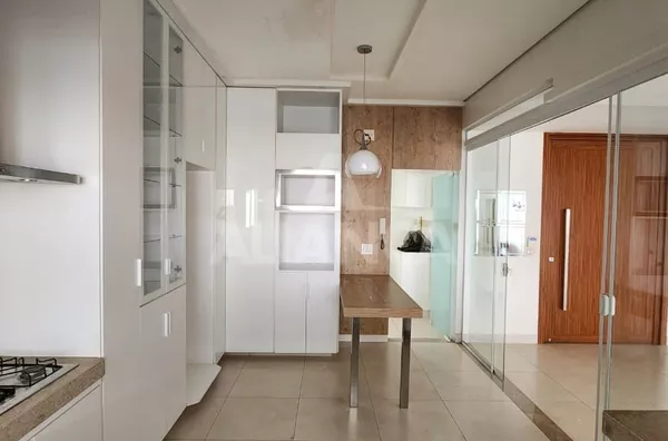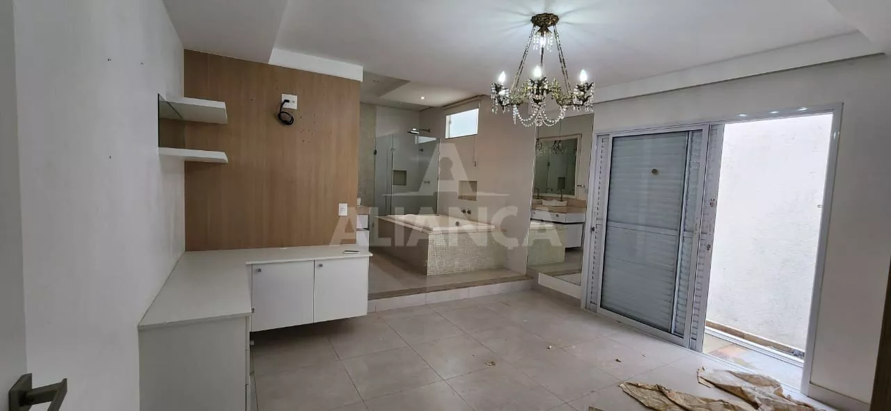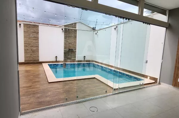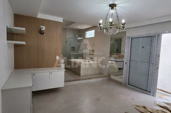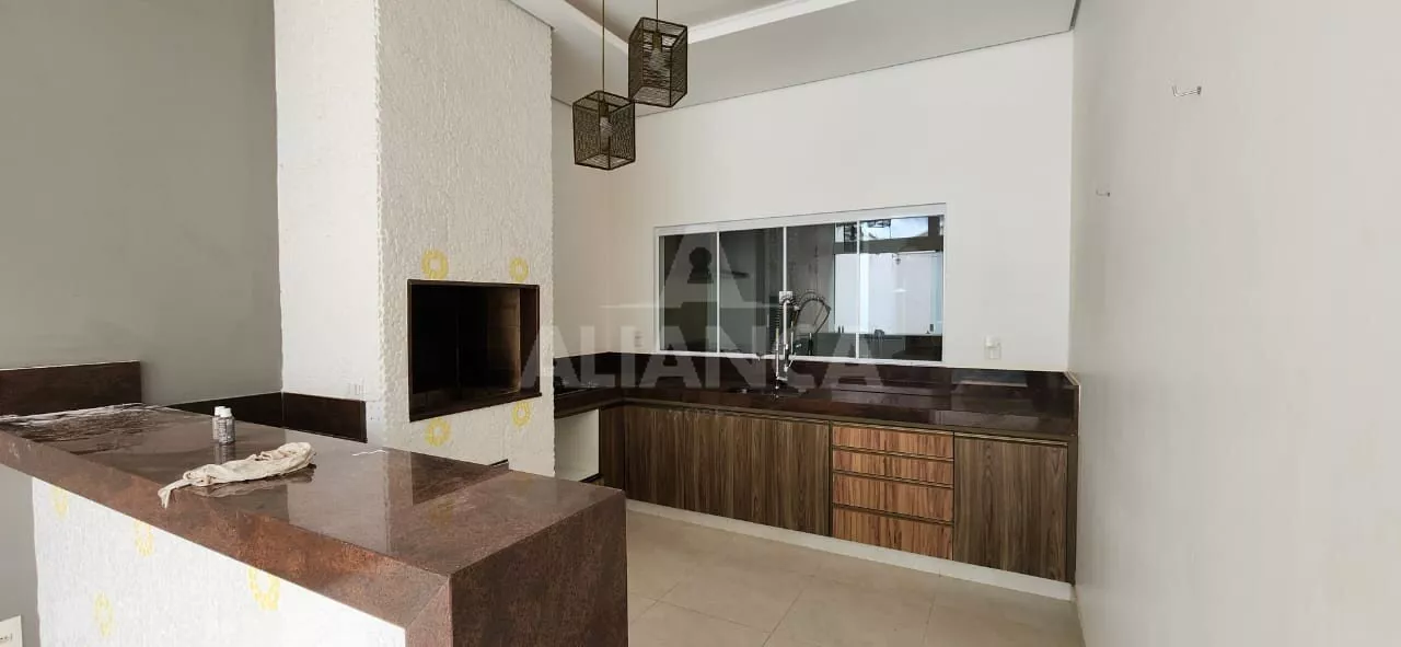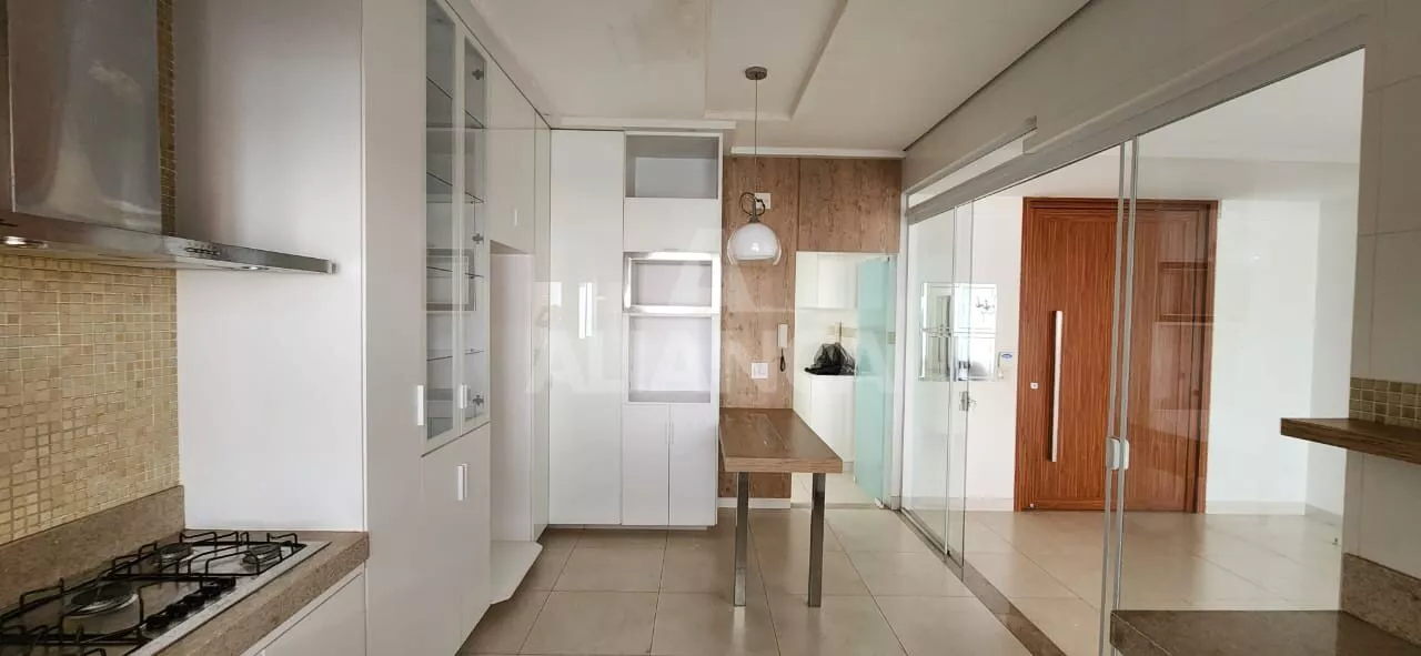 Sala em 02 ambientes com painel, lavabo, 03 quartos sendo 01 suíte com banheira de hidromassagem e 02 semi suites com armários, cozinha ampla com bastante armários, cooktop, área de serviços com armários, área de lazer completa com piscina aquecida, churrasqueira, cooktop, garagem para 02 carros cobertos e 02 descobertos, aquecedor solar nos banheiros, alarme