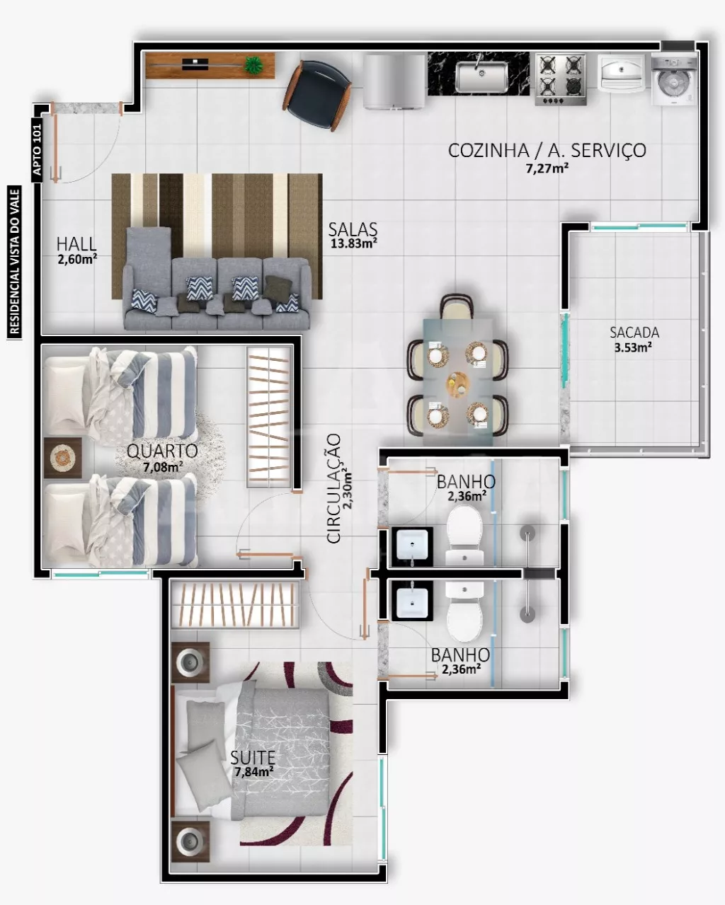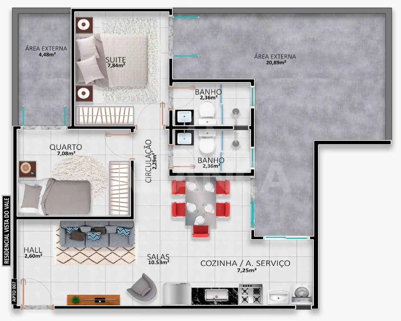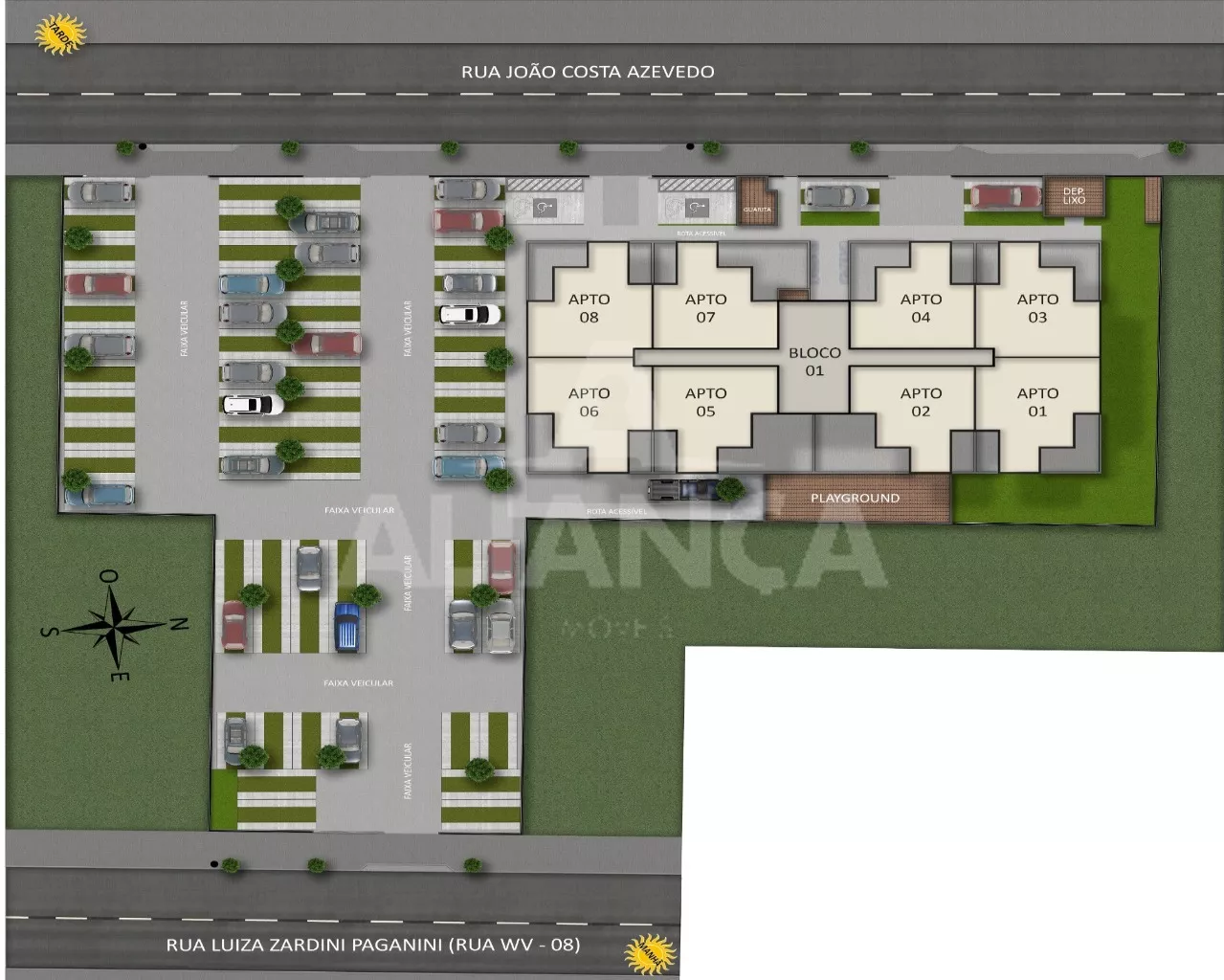 Sala de estar me dois ambientes com sacada, 02 quartos sendo 01 suíte, banho social, cozinha, área de serviço, garagem, play ground, elevador, portaria projetada para 24 hs, espaço gourmet, churrasqueira, próximo ao Praça Shopping, Supermercado, localização privilegiada.