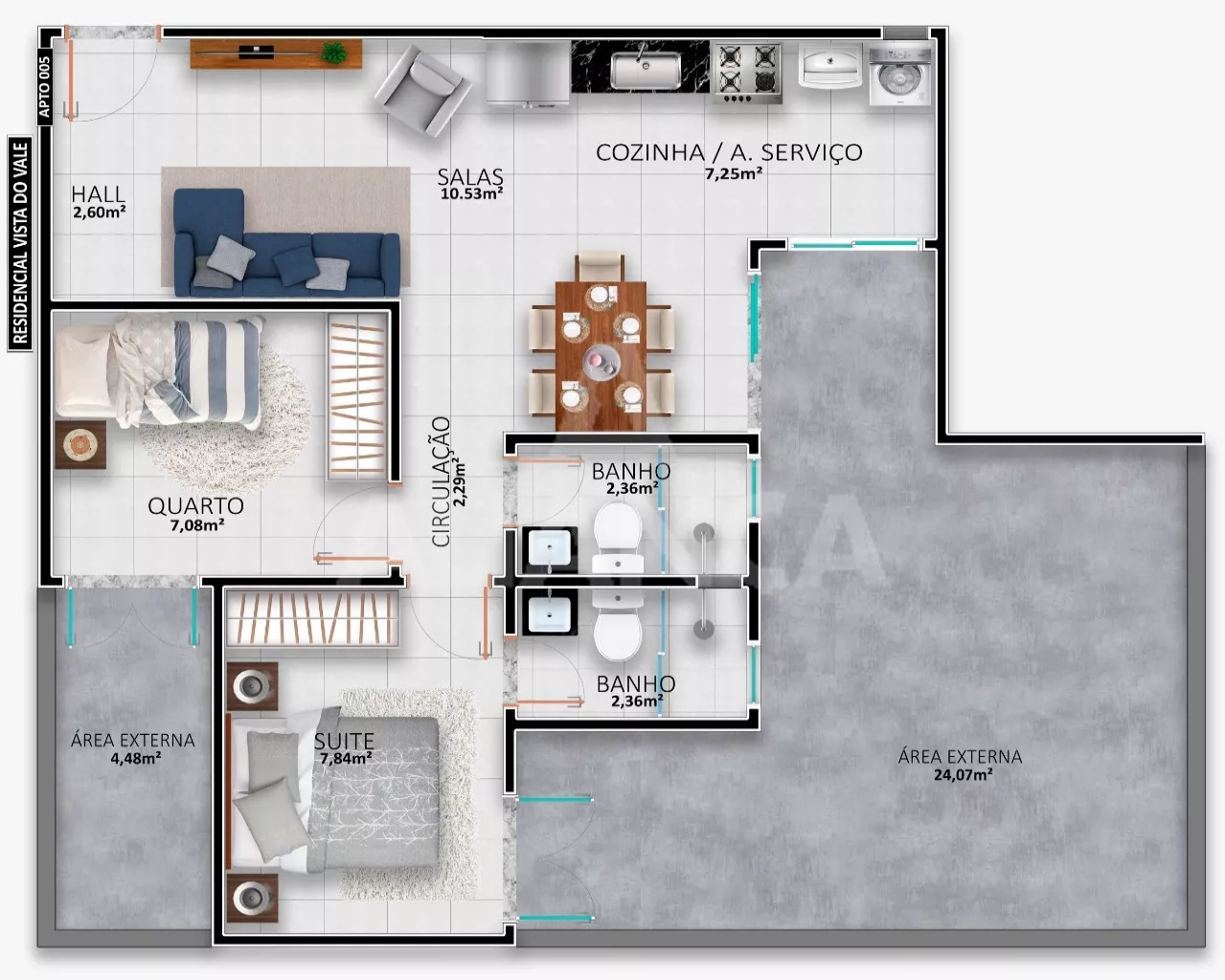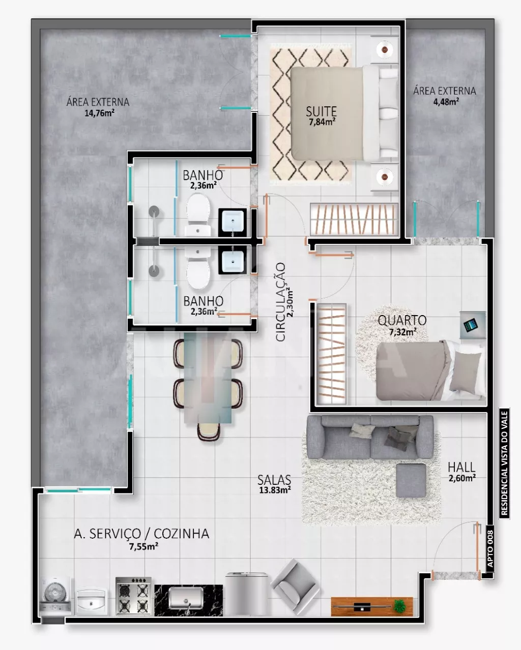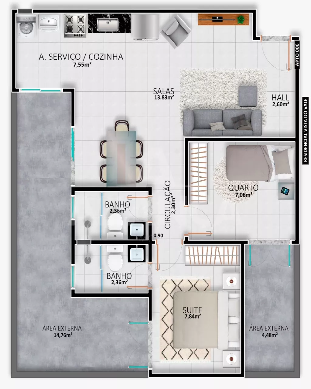Sala de estar me dois ambientes com sacada, 02 quartos sendo 01 suíte, banho social, cozinha, área de serviço, garagem, play ground, elevador, portaria projetada para 24 hs, espaço gourmet, churrasqueira, próximo ao Praça Shopping, Supermercado, localização privilegiada.