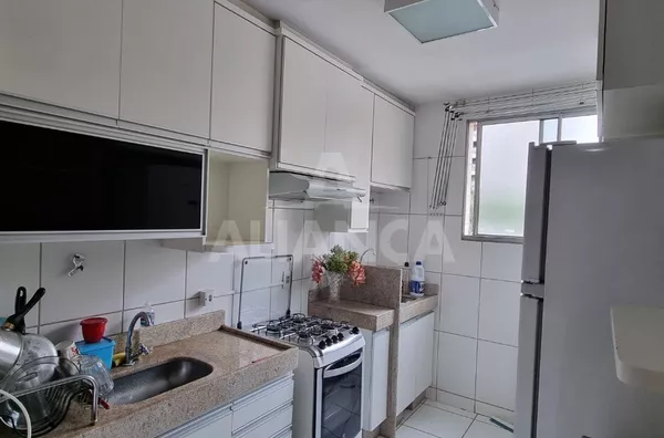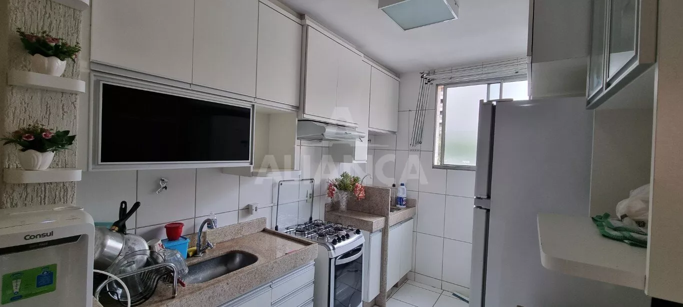 Sala de estar em 02 ambientes, 03 quartos com armários sendo 01 suíte, cozinha planejada, área de serviço, acabamento diferenciado, garagem para 01 carro, playground, salão de festas, portaria 24 horas, gás canalizado, sistema de segurança, localização privilegiada de fácil acesso.